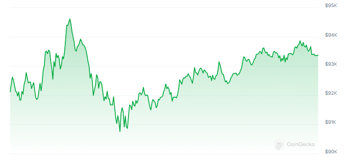 As of writing, Bitcoin is being traded at $93,785 per coin with a total market capitalization of $1.8 trillion.