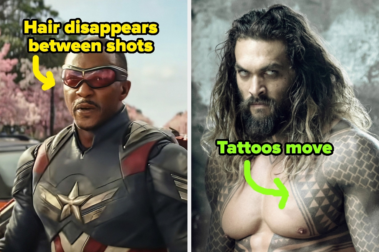 Jason Momoa’s tattoo placement changes between shots in Justice League.