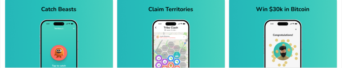 Each week Jippi will release a new Territory to be claimed. A Tribe member will explore that Territory with their phone, where they will discover a Bitcoin Beast to catch. If they successfully answer all Bitcoin quiz questions correctly the fastest, they will then catch that beast. The Tribe with the most Territories and Bitcoin Beasts at the end of the game will win $30k worth of Bitcoin to be dispersed equally to each Tribe member.
